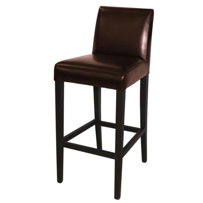 Volledig gemonteerde donkerbruine hoge barkruk met kunstlederen bekleding en robuust berkenhouten frame. Met een zithoogte van 76 cm is het perfect voor dagelijks binnengebruik in bars, restaurants en andere eetgelegenheden. Per stuk verkrijgbaar. Deze barkruk heeft kunstlederen bekleding en een robuust berkenhouten gelakt frame. Perfect voor dagelijks binnengebruik in bars, restaurants en andere eetgelegenheden. Voldoet aan BS7176 norm.
