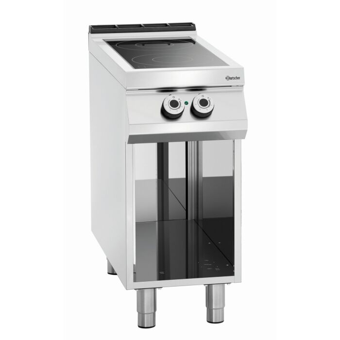 Fornuis keramisch Bartscher, 2 branders open onderstel, 40(b)x90/95(h)x90(d)cm, 400V/8kW