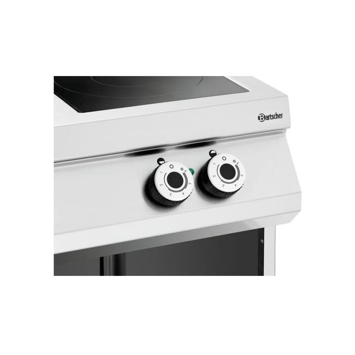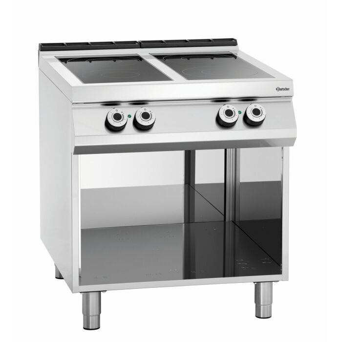 Fornuis keramisch Bartscher, 4 branders open onderstel, 80(b)x90/95(h)x90(d)cm, 400V/16kW