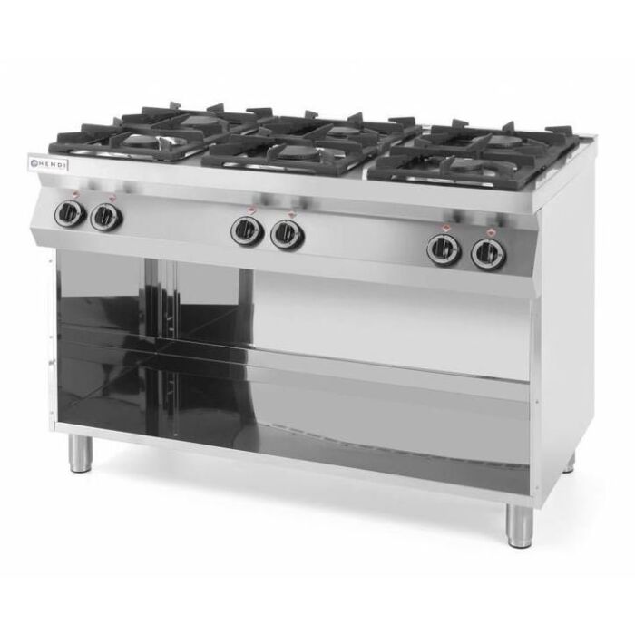 Gasfornuis Kitchen Line, 6 Pits, 3 x 3, 5 kW + 3 x 6 kW, Open Onderstel, 1200x700x(H)900 Hendi