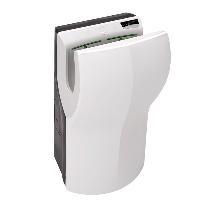 Deze hands-in-handendroger typeert zich door een subtiele geluidssterkte en ongekend snelle droogtijd. De droger heeft, in tegenstelling tot andere exemplaren, een zorgvuldig ingebouwde geluidsreductie, waardoor uw gasten niet meer opgeschrikt door ongewenste blaasgeluiden. De droger is voorzien van een speciale Biocote bescherming, die het hygiënisch gebruik van de droger waarborgt.