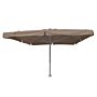 Deze Horeca parasol 3x3 meter Bali ecru is een stevige en grote parasol die ideaal is voor gebruik op terrassen of in tuinen. Het vierkante doek biedt voldoende schaduw en zorgt voor een sfeervolle uitstraling. De parasol wordt geleverd met een beschermhoes en het doek is gemaakt van 300 grams polyester met een PU coating, wat het doek water- en vuilafstotend maakt. Let wel op dat bij langdurige regenval of hevige regenval, enige waterdruppels door het doek heen kunnen komen. De parasol heeft een aluminium frame. De parasolvoet is echter niet inbegrepen en moet apart besteld worden. Bij het bestellen van deze parasol moet je dus ook de gewenste parasolvoet kiezen uit de beschikbare opties. De parasolvoeten worden beschreven op de website en variëren in functionaliteit en uitvoering. De specificaties van de horeca parasol vind je op de website en bevatten onder andere de afmetingen, het materiaal van het doek en het frame, en de hoogte van de mast. De volant onderaan het doek biedt niet alleen extra decoratie maar kan ook voor extra schaduw zorgen bij een laagstaande zon.