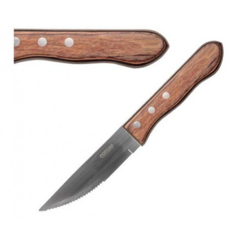 Een goede steak snij je niet met een gewoon mes, maar met een daarvoor bedoelde steak mes. Een fraai vormgegeven houten handvat biedt stabiliteit in de hand en met een scherpe kartelkant snij je super eenvoudig je steak in stukjes. Het fraaie van steak bestek is dat het niet enkel voor de functionaliteit bedoelt is, maar het geeft ook die ambiance die een klant verwacht. TIP: Serveer je steak op een houten plank acadia, serveer de bijbehorende frietjes in een mini frituurmandje en boven op dit al maak je het af met een origineel steak mes en steak vork. Ons steak bestek is natuurlijk ook uitermate geschikt voor stevige hamburgers die je op onze houten planken, in krantenpapier kunt serveren. Voor leuke originele combinaties kun je contact met ons opnemen.