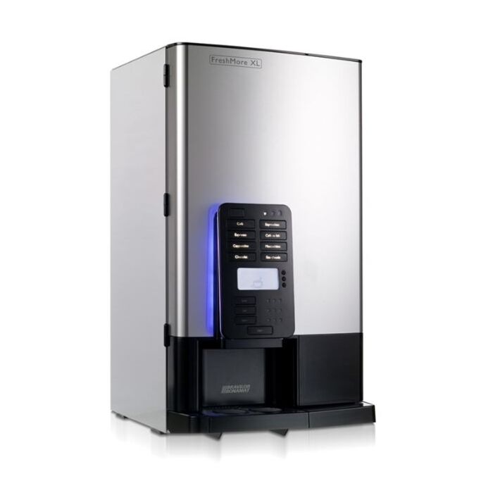 Als u kiest voor de FreshMore XL 511 heeft u een duurzame, volautomatische koffiemachine om verse filterkoffie te serveren. Daarnaast is er ruimte voor ingrediënten om decafe, koffiespecialiteiten en chocolademelk aan te bieden. De FreshMore XL 511 is een onderhoudsvriendelijke koffiemachine met keuzeknoppen voor een kop, beker of thermoskan, de sterkte van de koffie en het toevoegen van melk of suiker aan de koffie.