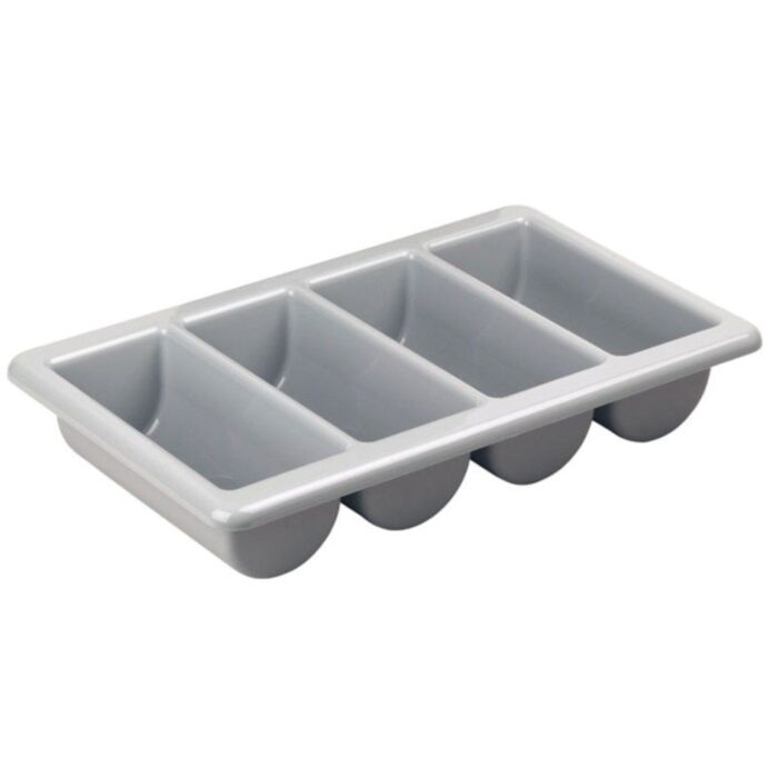 Bestek bak van hoge Kwaliteit, hard plastic. Leent zich uitstekend voor drukke horeca omgevingen. Gemaakt uit 1 stuk melamine plastic. Gemakkelijk schoon te maken. Bestekbak GN 1/1. Sterk en praktisch met 4 ruime vakken. Stapelbaar. Afmeting 100(H) x 530(B) x 325(D)mm
