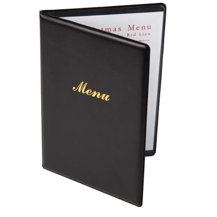 Kunststof menumappen voor 2 pagina's. Keuze uit A4 of A5 afmeting. Wordt zonder kaart geleverd.