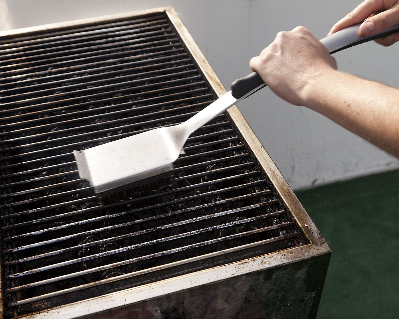 Een schraper is een onontbeerlijk attribuut voor het afschrapen van overtollig vet- en voedselresten op elke bakplaat, dus zowel voor de roestvrijstalen platen alsook voor de chroomplaten is een schraper een geëigend middel om snel en eenvoudig de plaat ná elk gebruik oppervlakkig te reinigen. De vet- en voedselresten verdwijnen in de afvallade van de bakplaat en kunnen desgewenst direct worden weggenomen door gebruikmaking van een stuk keukenrol.
