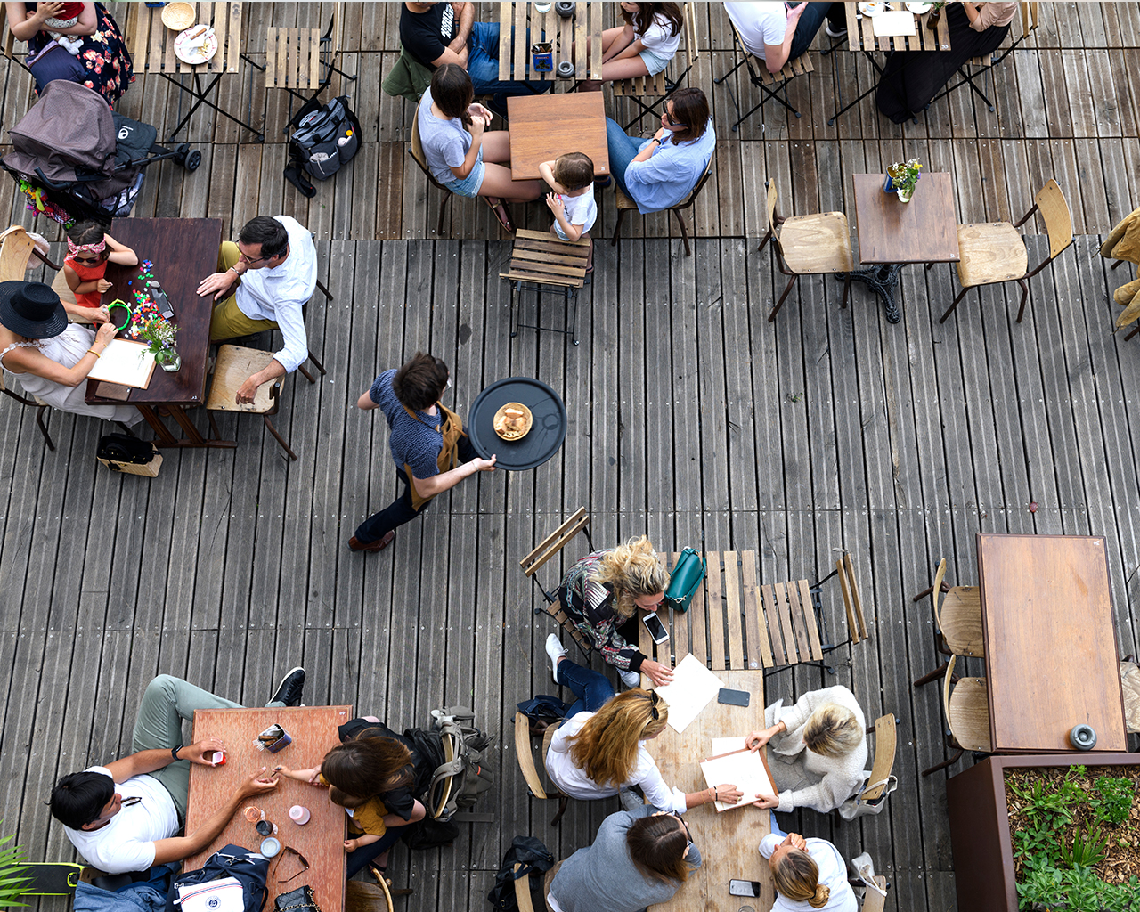 Het buiten bedienen van de gasten geeft een andere dimensie aan de handelingen dan binnen. Allereerst moeten alle zit en sta plaatsen buiten goed in de gaten worden gehouden op nieuwe gasten. Laat ze direct weten dat je ziet dat ze er zijn, door een gebaar of door naar ze toe te lopen. Zo voelen de gasten zich direct welkom en zitten ze op hun gemak. Ontwikkel een goed bestelsysteem voor buiten zodat de gasten snel worden bediend, hierdoor wordt er sneller een nieuw drankje besteld en is het tafeltje ook weer sneller vrij voor de volgende gasten. Het nummeren van de tafels kan goed helpen om het overzicht te bewaren en de bediening in te delen. Dit kan met de tafelnummers van Olympia of HVS-Select.