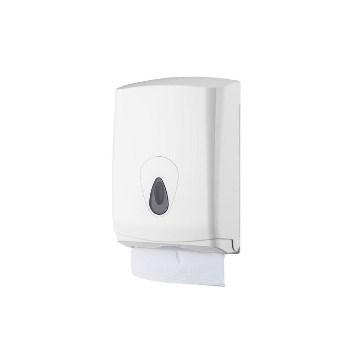 Deze handdoekdispenser biedt plaats aan C- en Z-gevouwen papieren handdoekjes. Besluit je ooit om voor interfold handdoekjes te kiezen, dan schaf je gewoon het speciale inlegplaatje aan.Dan beschik straks over een sterke en functionele handdoekdispenser die ook nog eens universeel navulbaar is. De keuze voor papierleverancier blijft dus aan jou.