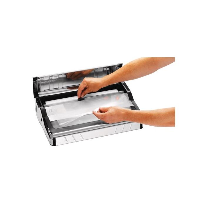 Afkomstig van het merk Bartscher het vacumeerapparaat 420/20L. Met een maximale sealbreedte van 42cm kun je extra grote vacumeerzakken verwerken. In een handomdraai vacumeer je enorm grote porties vlees, vis en gevogelte. Het apparaat staat altijd klaar om direct te gebruiken. Het vacuumapparaat is met de rolhouder en het geïntegreerde mes direct klaar voor gebruik. Maar niet alleen voor grote hoeveelheden, ook voor alle kleinere hoeveelheden is het apparaat uitermate geschikt voor vacumeren, marineren en verzegelen. Deze vacumeermachine laat zich eenvoudig bedienen door de handige knoppen en is voorzien van een digitaal display. Een controle lampje geeft aan of het apparaat aan of uit staat en wanneer deze klaar is met vacumeren dan slaat het apparaat automatisch af.