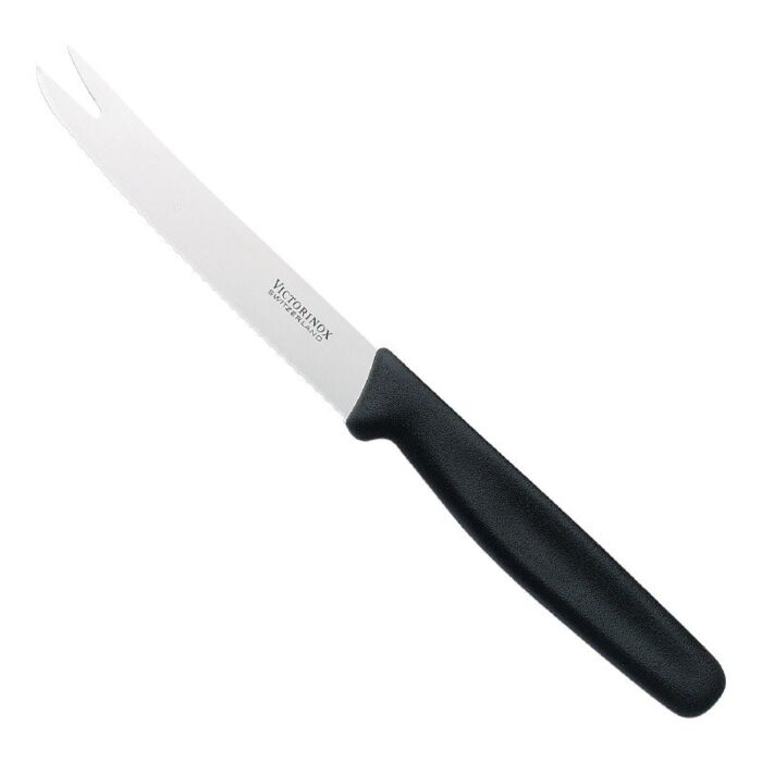 Dit barmesje van Victorinox is van professionele kwaliteit en heeft een gekarteld RVS lemmet met een gevorkt uiteinde en een nylon heft. Ideaal voor het snijden van fruit.