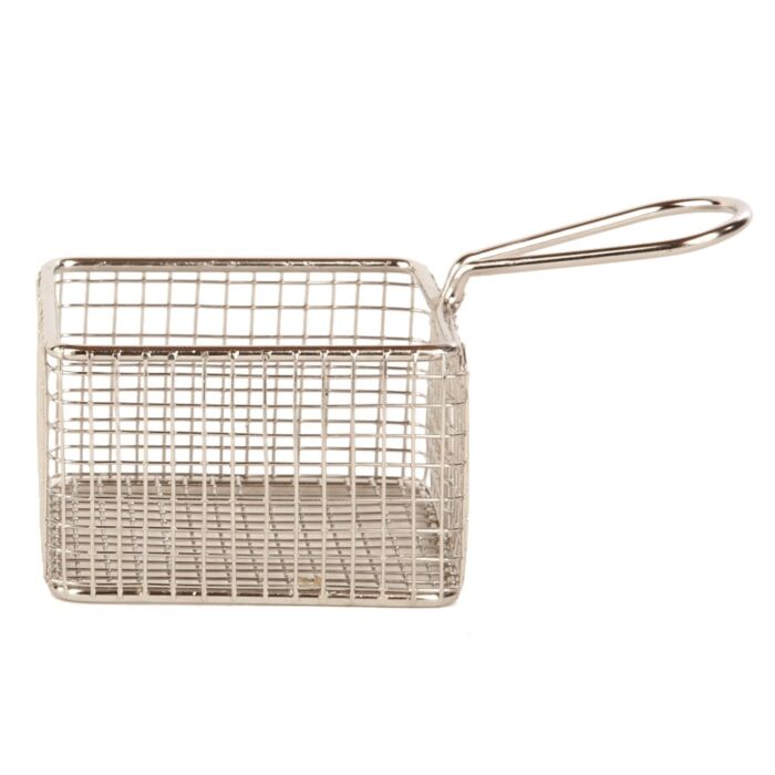 Vierkant draadmandje 9,5x9,5x6cm 18/10 zorgt voor een feestelijke presentatie van een portie friet of groente op tafel. Het draadmandje is gemaakt van RVS en makkelijk te onderhouden en schoon te houden.